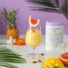 Ingredients: Verisol collagen hydrolysate, Vitamin C, Hyaluronic acid, Biotin, VERISOL bovine collagen hydrolysate, acidity regulator: citric acid, vitamin C (L-ascorbic acid), flavourings, stabiliser: acacia gum, sweetener: sucralose, colour: carotenes, sodium hyaluronate, D-biotin.