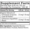 Ingredients: Extracts of: (Echinacea purpurea (Leaf & Flower), Echinacea angustifolia (Root)), Vegetable glycerin, deionized water, fructose, natural flavors.