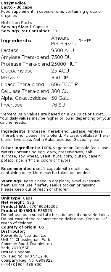 Opdag Enzymedica – Lacto, et praktisk supplement til din daglige rutine. Dette produkt er fremstillet i USA og kommer i en pakke med 30 kapsler, designet til at passe ind i en aktiv og balanceret livsstil.