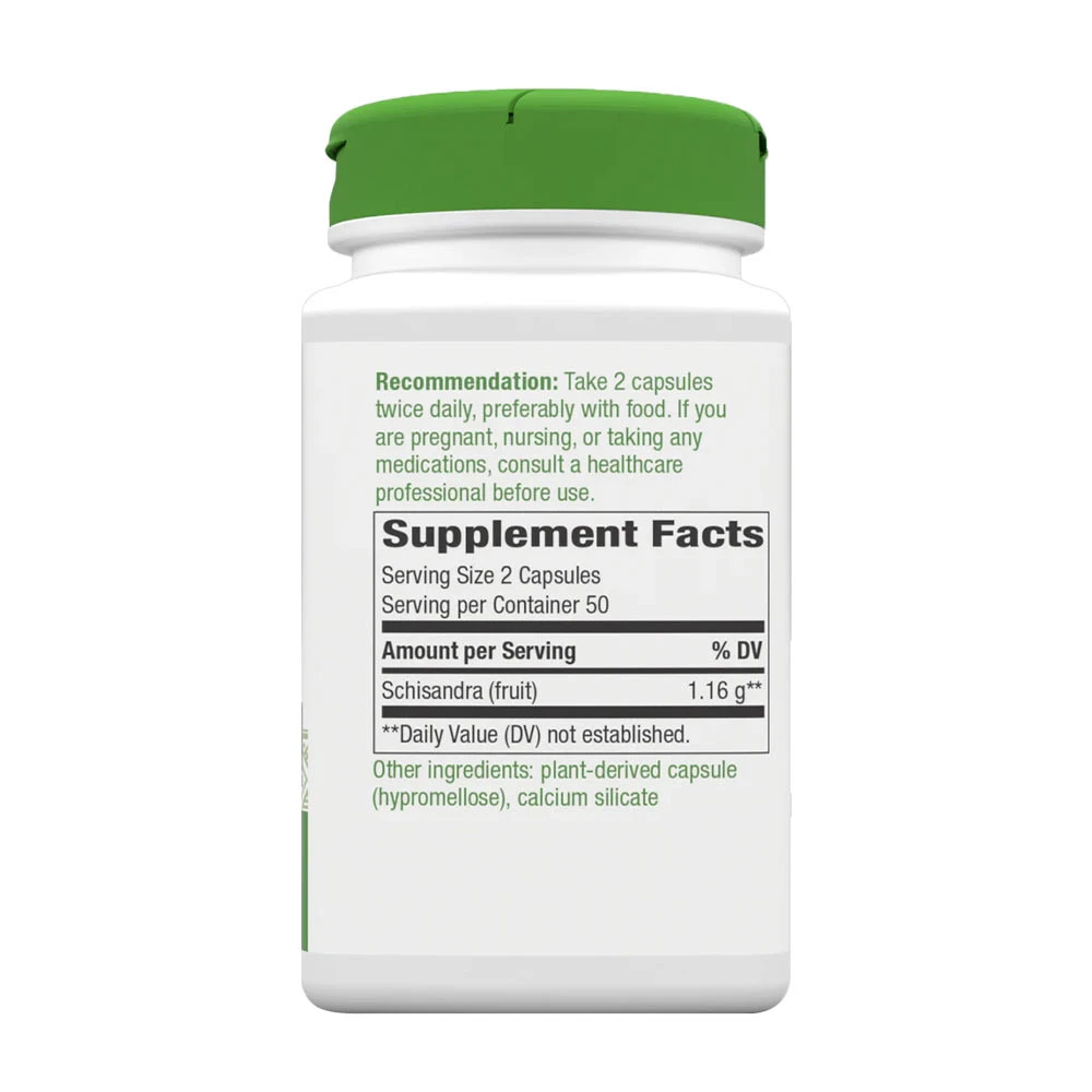 Discover Natures Way Schisandra Fruit, a food supplement featuring 100 vegan capsules per pack. Each capsule contains a carefully prepared powder from the Schisandra berry (Schisandra chinensis), also known as Chinese split berry or Wu-Wei-Zi.
