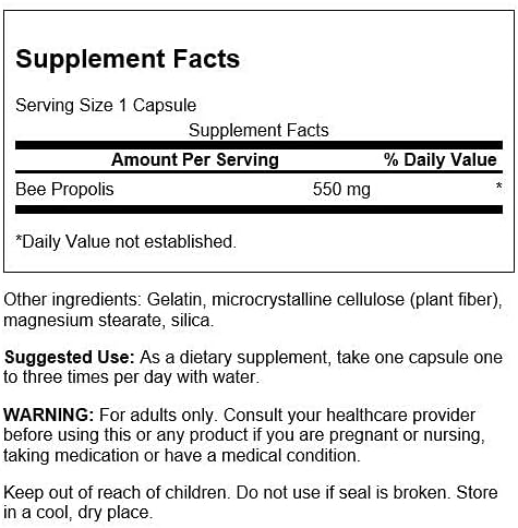 Each capsule provides 550 mg of bee propolis and is easy to take as part of your daily routine. Manufactured by Swanson, this product is designed for those seeking a straightforward way to incorporate bee propolis into their diet.