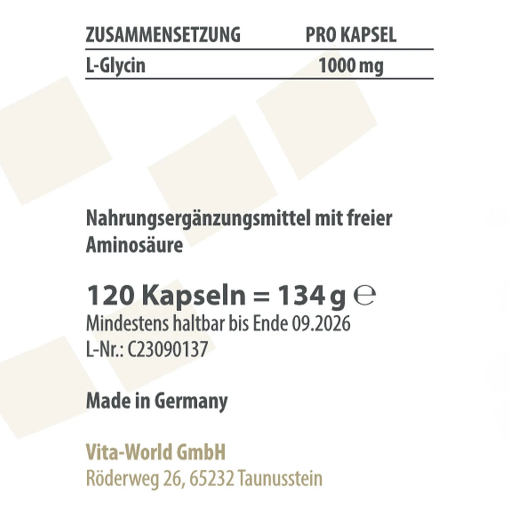Discover Vitaworld L-glycin 1000 mg, a food supplement from the trusted brand Vitaworld. Each pack contains 120 capsules, providing a convenient way to add L-glycine to your daily routine.