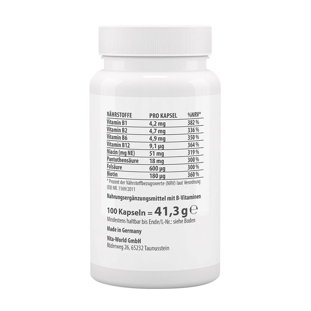 Discover Vitaworld Vitamin B-kompleks, a food supplement presented in a convenient 100-capsule pack. Produced by Vitaworld, this product offers a straightforward way to add Vitamin B complex to your daily routine.