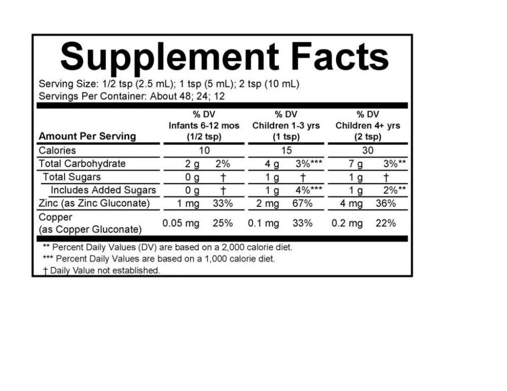 Food Supplement with Zinc and Copper in Syrup Form